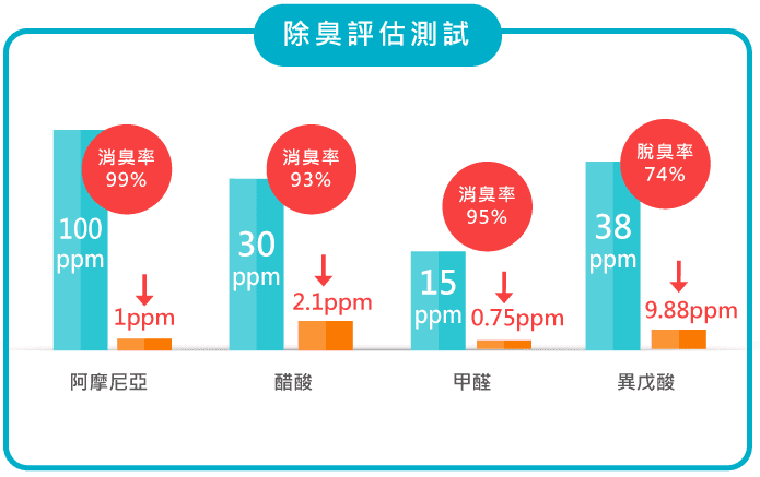 日本唯一特許專利-無光觸媒 主要成分為磷酸二氧化鈦 藉由光觸媒二氧化鈦為起始原料,與磷酸反應後,完全不需要光源,在陰暗處所仍可發揮效能。並利用細微粒子之間經由脫水縮合,高度地密合在基材上,形成超微米的多孔體組織。 因此能在各種環境中達到長效除臭、抗菌、抗病毒等各種功效。