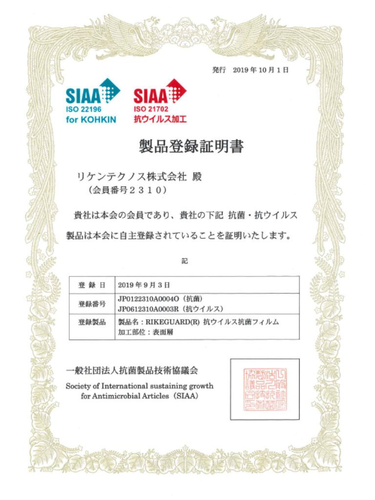 SIAA標章乃由「一般社團法人抗菌製品技術協議會」所制定,必須符合『抗病毒性、安全性、正確的標示』3項嚴格規範,方可使用此標章。